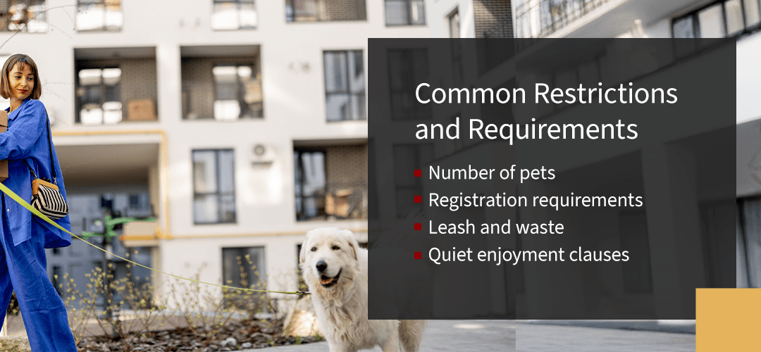 COAs that do not allow pets must allow service animals. COAs may also need to allow assistance animals if the tenant can produce evidence that such an animal is necessary for their health. However, associations can still lay out clear rules for these animals. Most service animals and assistance animals are well-trained, so issues are unlikely. Still, it’s best to cover all angles.
