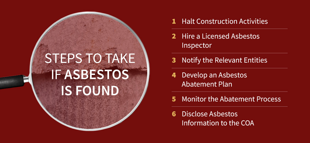 If you suspect the building you are renovating contains asbestos, there are a few steps you can take.